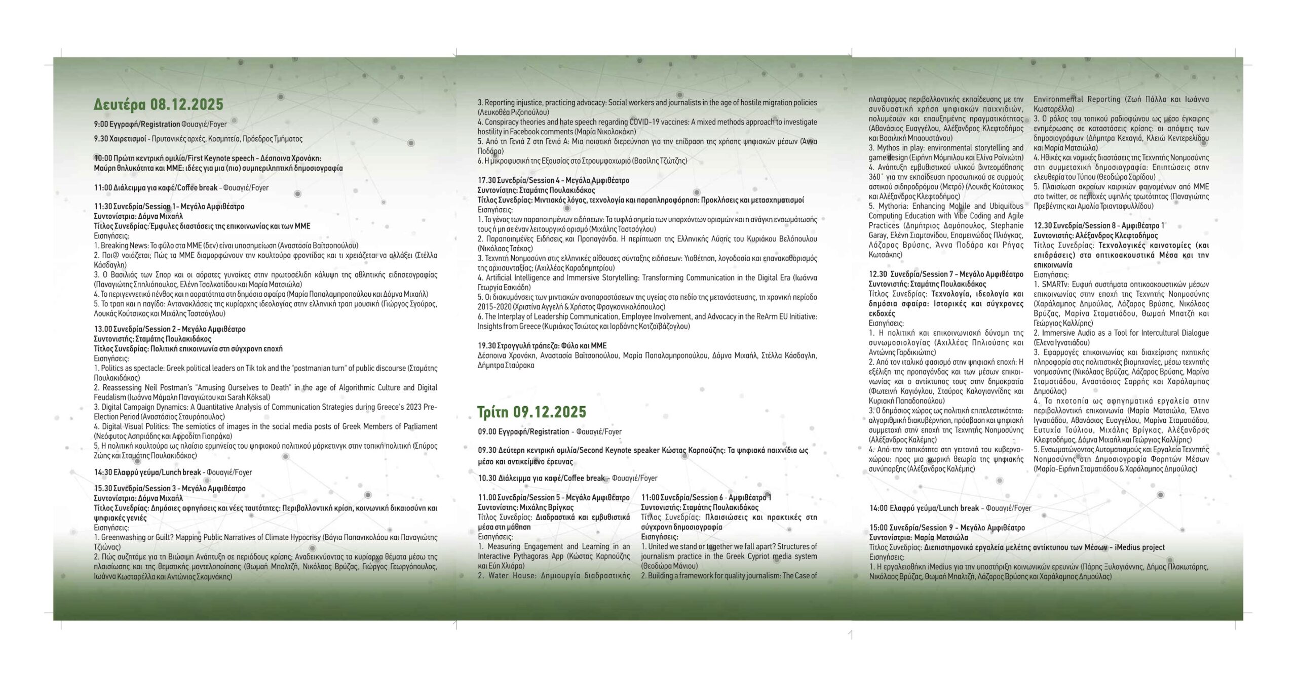 Συμβουλευτείτε το πλήρες πρόγραμμα του Συνεδρίου.