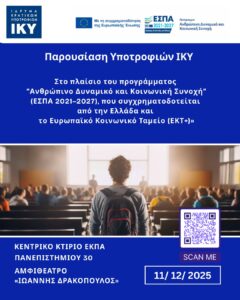 Ημερίδα ΙΚΥ με τίτλο «Παρουσίαση Υποτροφιών ΙΚΥ στο πλαίσιο του προγράμματος “Ανθρώπινο Δυναμικό και Κοινωνική Συνοχή” (ΕΣΠΑ 2021–2027), που συγχρηματοδοτείται από την Ελλάδα και το Ευρωπαϊκό Κοινωνικό Ταμείο (ΕΚΤ+)»